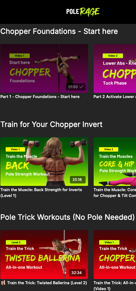 I created Pole Rage® to take the guesswork out of getting stronger for pole. You shouldn’t have to figure it all out yourself — or risk injury chasing tricks your body isn’t ready for yet.