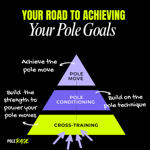 Cross-training builds the strength off the pole. Pole conditioning applies that strength to the move.